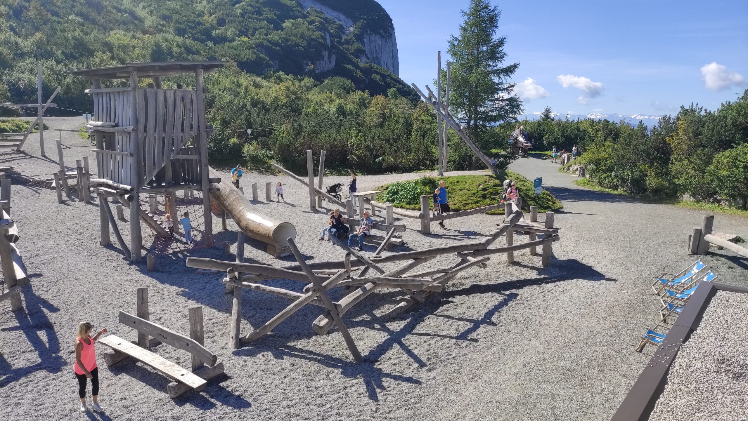 A Triassic Park közkedvelt eleme, a Steinplatte messziről látható, függőleges, gigantikus mészkőfalától nem messze kialakított, üvegből és fémből épült SkyWalk, kilátó platform, mely több méterre nyúlik ki az irdatlan mélység fölé, a tériszonyosok nagy bánatára. A néhol rácsos, ill. üveg aljú kilátón 70 méter mélység felett állva valóban lélegzetelállító kilátásban lehet részünk. A lábunk alatt, a közel 1000 méterre lejjebb fekvő völgy, szemben a Fellhorn tömbje, a távolban pedig a Kaisergebirge csipkés lánca húzódik. Tiszta időben a horizonton jól kivehetők a Magas-Tauern hófödte csúcsai, a gleccserekkel.